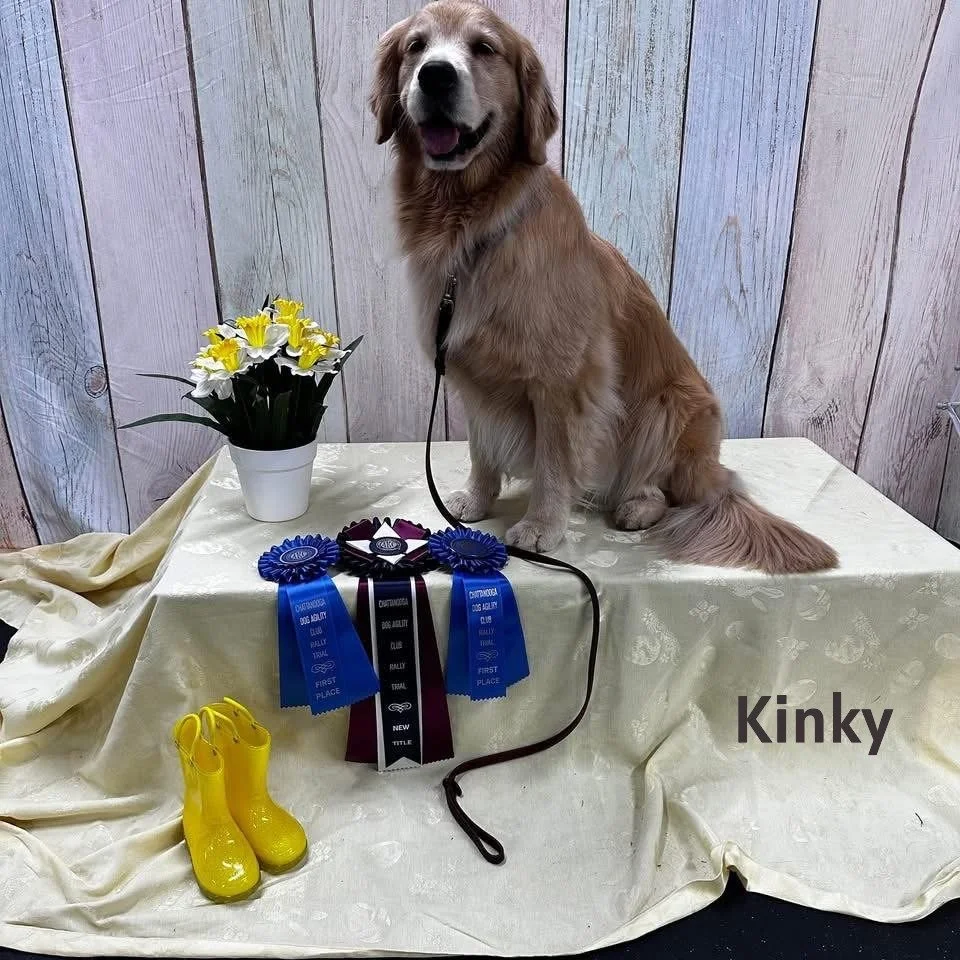 Kinky, owned by Cherie Monen, won 3 first place ribbons and 1 second ribbon plus her Rally Intermediate Title! Congratulations Cherie and Kinky!
